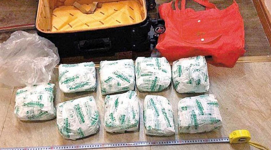 龙华警方破获一起跨境运输毒品案,现场抓获2名嫌疑人,缴获毒品9.4公斤。图为警方缴获的毒品。