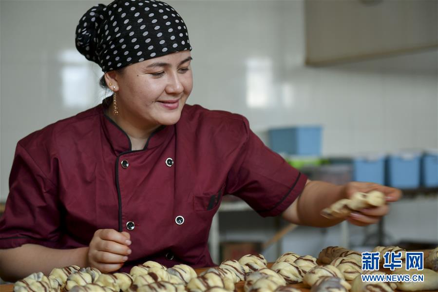 9月19日,新疆伊宁市实大实点心店员工在店里制作点心。新华社记者王菲摄