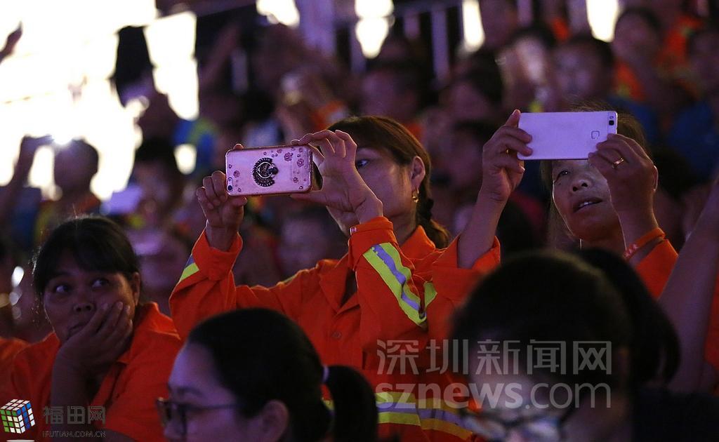 在场的环卫工代表纷纷掏出手机,记录深圳绚丽的夜景。