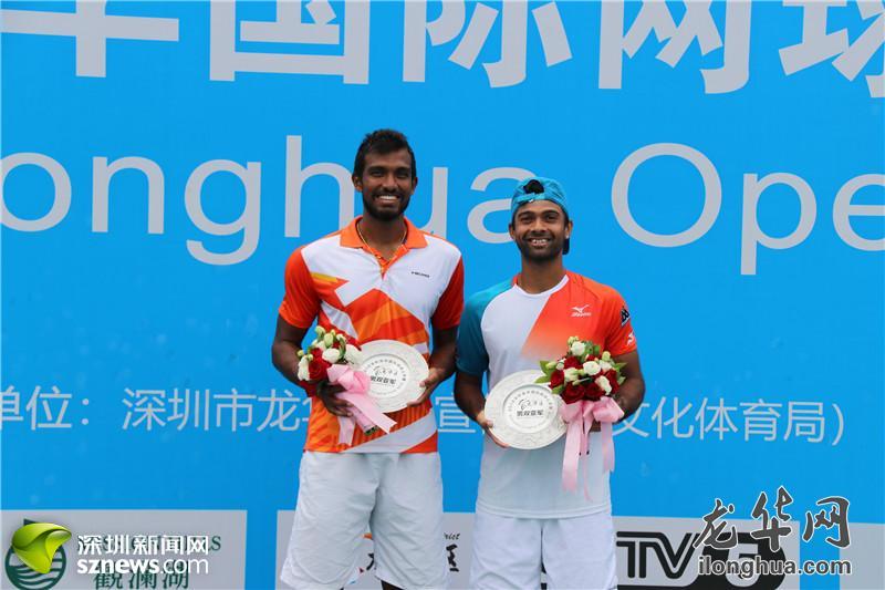 在赛后的颁奖仪式上,深圳市龙华区委宣传部副部长、文化体育局局长付妍和观澜湖集团执行董事刘琦分别为男双冠亚军组合颁奖。