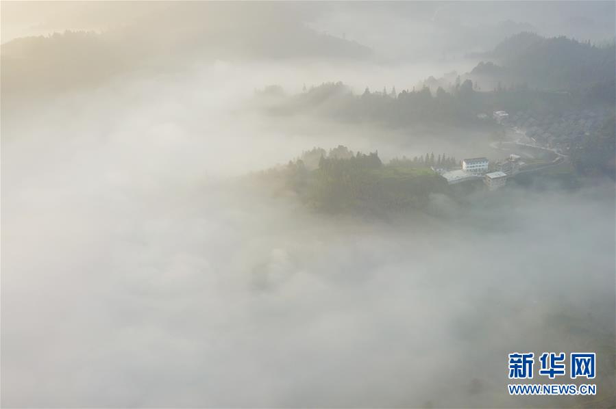 三江侗族自治县是广西著名的茶乡。清晨,茶园薄雾飘荡,静待游客的到来。