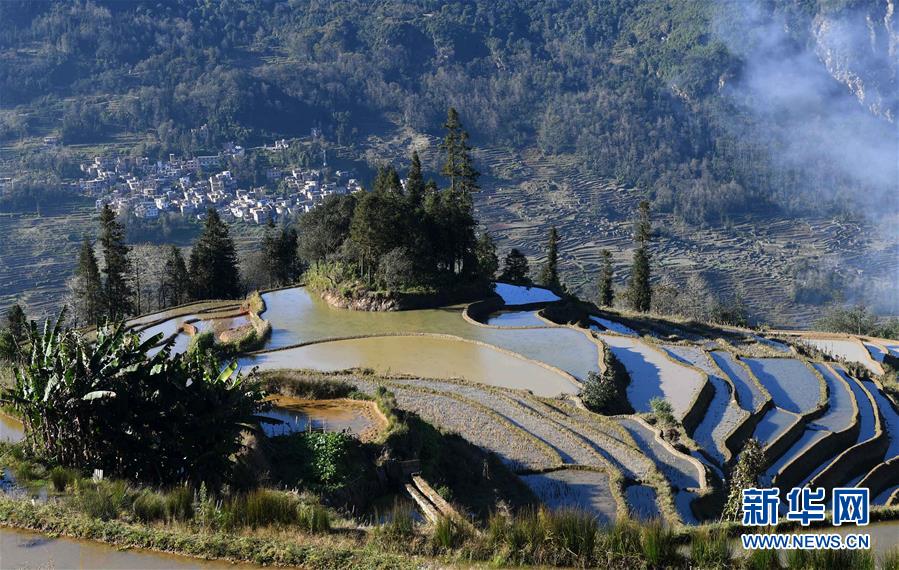 这是云南省红河州元阳县的哈尼梯田美景(12月18日摄)。新华社记者 曾维 摄