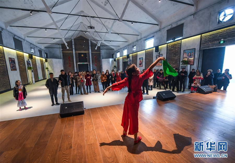 12月20日,村民们在旧粮仓改建的文体中心前排练广场舞。新华社记者徐昱摄