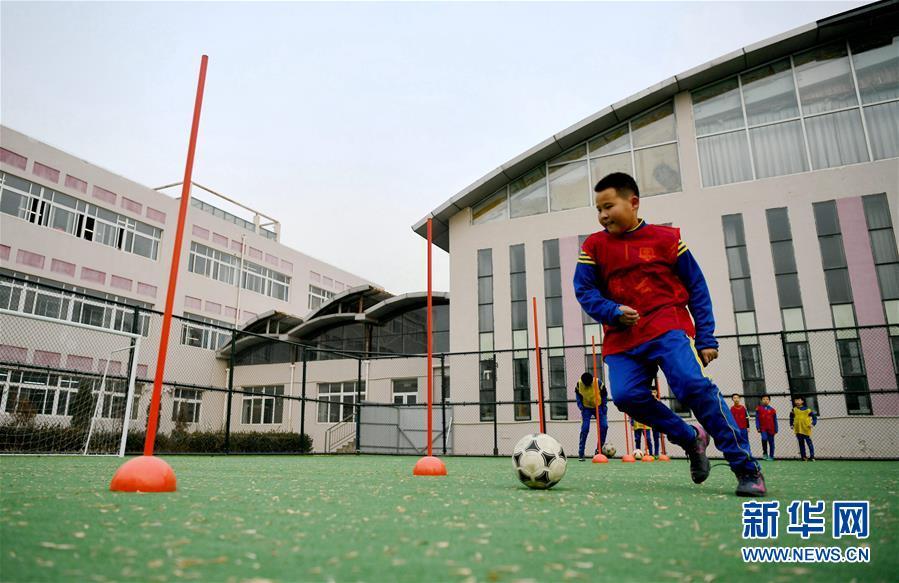 12月21日,廊坊市第十四小学学生在进行足球训练。近年来,河北省廊坊市第十四小学组建学生社团,积极开展内容丰富、形式多样的“第二课堂”活动,丰富校园文化生活。新华社记者王晓摄