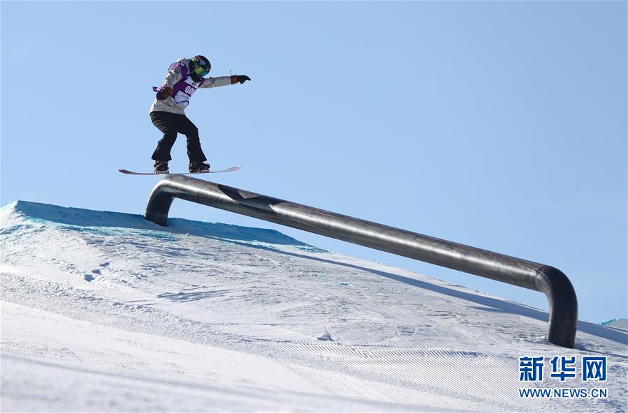图为2018年12月21日,在河北崇礼云顶滑雪场举行的2018-2019国际雪联单板滑雪坡面障碍技巧世界杯女子组决赛中,勒菲弗·露西尔获得季军。新华社记者杨世尧摄