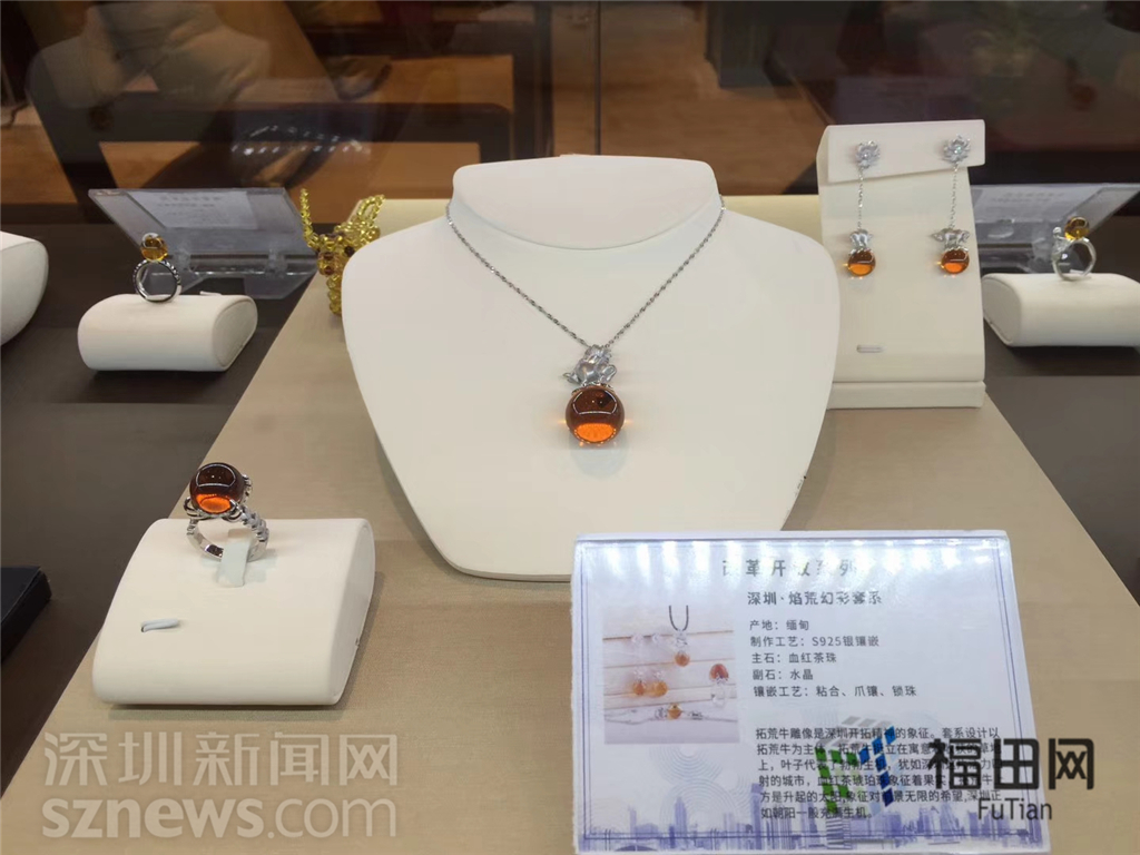 此次活动上展出的获匠心杯优秀奖和2018年文博会“飞花奖金奖“特区神韵”琥珀系列作品,就是米蓝集团致敬改革开放40周年的献礼之作。据介绍,该作品设计灵感来源于改革开放最早设立的5个特区的人文风貌,用血红茶、蓝珀精心打造。结合琥珀天然澄静、历经岁月磨砺的材质特色,作品寓意深厚,深受观展人群喜爱。