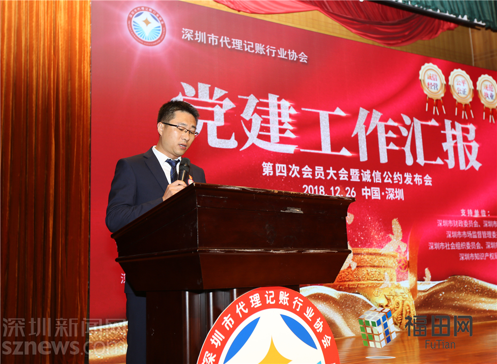 会上,深圳市代理记账行业协会执行会长马辉民代表协会致欢迎词,协会党支部书记邓伟俊汇报了“党建工作情况”。邓伟俊表示,“党建助协会,协会促党建”一直是联合党委开展工作的思路,党建工作,不仅是要把党的声音传达、贯彻到协会、企业中,也不仅要把党的组织建立到协会、企业中,还要指导和监督协会、企业在经营中要遵纪守法。随后市社会组织领导发言,对协会未来发展表示充分认可,并高度表扬了本次活动对促进代理记账行业的可持续健康发展开拓了新局面。