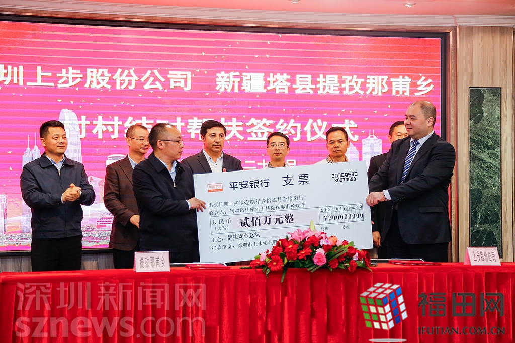 深圳新闻网12月27日讯 (记者 何静 实习生 李慧玲)12月27日,“村村结对”新疆塔县帮扶签约仪式在上步大厦举行。针对塔县提孜那甫乡3个自然村,上步股份公司将根据各自特点和实际情况,分期分批开展帮扶项目,并预计投入资金约200万元。