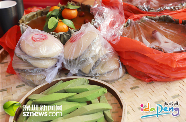而在贺年食品摊位处,店主鲁小姐则向记者强烈推荐具有大鹏本土特色的贺年食品,“这种年糕跟商场上卖的不一样,里面加了我们大鹏的一种植物的汁液,吃起来特别清香,是我们大鹏人过年送礼的首选!”