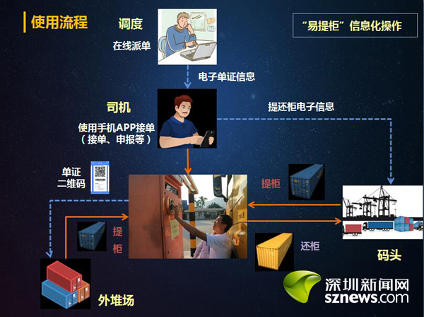 因货柜车司机路边违停提单取单引发的交通拥堵,一直是盐田港后方陆域治理的难题,这种传统的提还柜纸质单证交换模式是导致违停和拥堵的根源。为彻底解决这一问题,盐田街道积极协调相关部门,加快智慧港口建设,在港区推广使用“易提柜”和“港运通”系统,将传统的纸质单证转变为电子凭证,实现货柜车司机提、还柜业务的信息化操作,对海运物流产业的操作模式与操作方式进行升级,全面提升行业效率,减少关键路段司机路边违章停车取单的现象,缓解港区交通拥堵的状况,推动港口物流产业的全面转型升级与“文明港口”、“绿色港口”、“智慧港口”的建设。