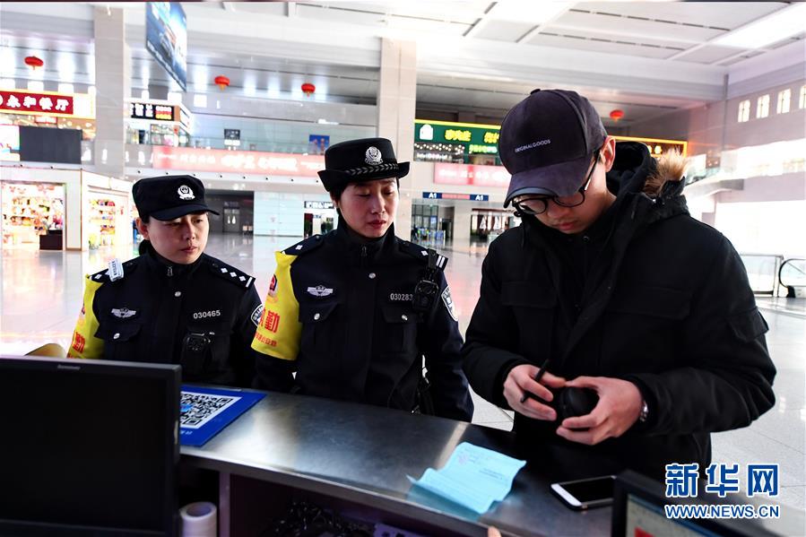2月5日,在长春西站,王蕾(左)和赵一非(中)帮助旅客找到遗失物品。新华社记者 张楠 摄