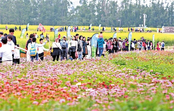 深圳新闻网讯 今年春节假期期间,光明区接待旅游人数达26.7万人,同比增长21倍,旅游收入达8009万元,同比增长43倍。其中,“光明花海”接待游客约24.5万人次,每日接待参观人数在4万左右,游园时间平均每90秒就有100人入园,“光明花海”成为新晋网红打卡圣地。图为光明小镇欢乐田园2000亩花海迎来车水马龙般的客流。