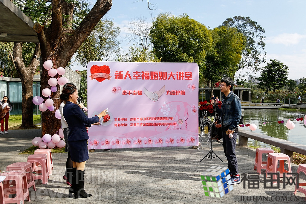 2018年底,福田民政局婚姻登记处新址启用,新登记处位于美丽的香蜜公园,被称为“全国最美婚姻登记处”。而2019年的情人节也是该婚姻登记处新址启用后遇到的首个情人节,因此格外受到市民关注。