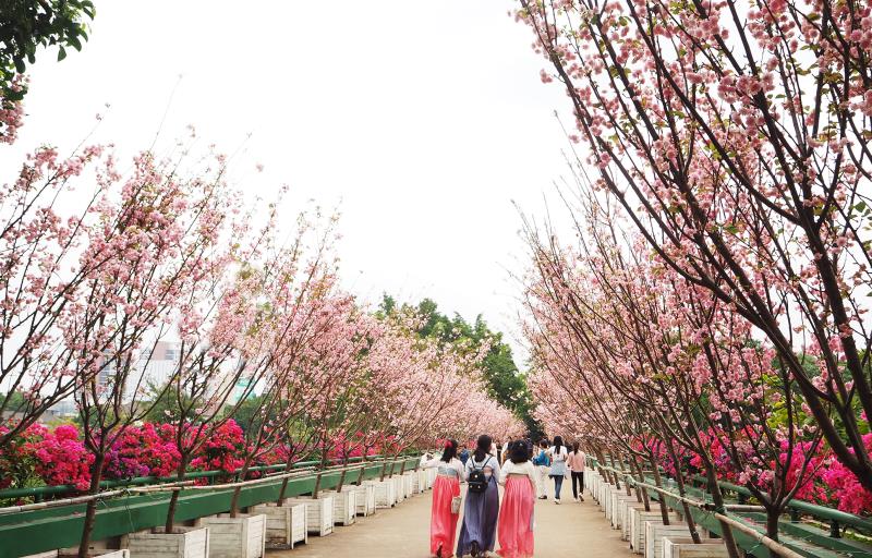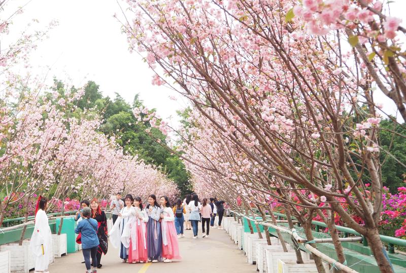 今年是观澜湖生态体育园连续第三届举办樱花节,1000多株盛开的樱花与游客见面,有粉红的貂蝉樱、桃红的贵妃樱、单瓣白色的小乔樱,上千株樱花打造出年味十足的樱花大道、樱花海洋等浪漫拍照主题景点。此外还新增了上万株鲁冰花做搭配,放眼看去一片姹紫嫣红。此次樱花节将持续至3月10日。