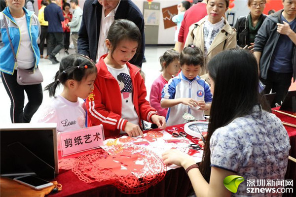 小朋友体验剪纸艺术。