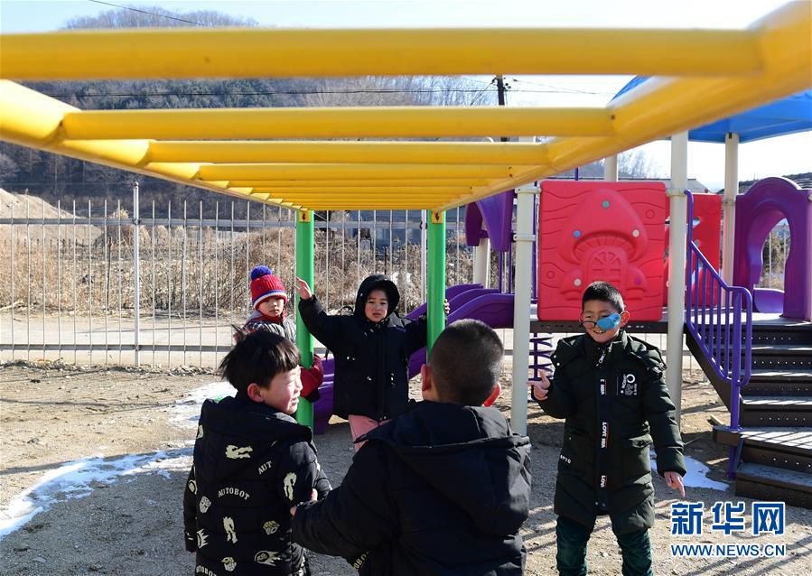 2月25日,荒沟庙村教学点学生在课间玩耍。当日,吉林省桦甸市二道甸子镇荒沟庙村教学点迎来开学日。位于大山深处的荒沟庙村教学点目前有4名教师,只有由5名二年级学生和2名学前儿童组成的一个复式班。教学点虽小,数字教学设备、取暖设备、课余活动器材等设施一应俱全。新华社记者林宏摄