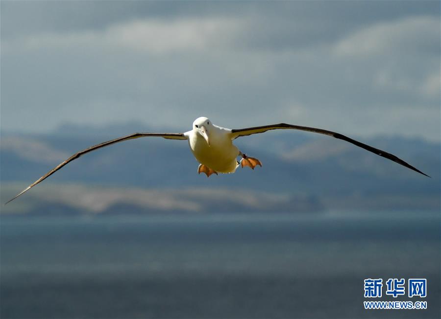 2月24日,在新西兰南岛达尼丁附近的泰厄罗阿角,一只信天翁在空中飞翔。新华社记者郭磊摄