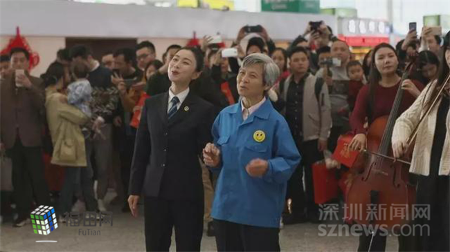 2月4日,一群神秘嘉宾为深圳北站带来了一场温暖的惊喜。当52岁清洁工赵立娟清亮悠扬的嗓音响起,立刻感染了现场的旅客,许多旅客开始好奇的围聚过来。