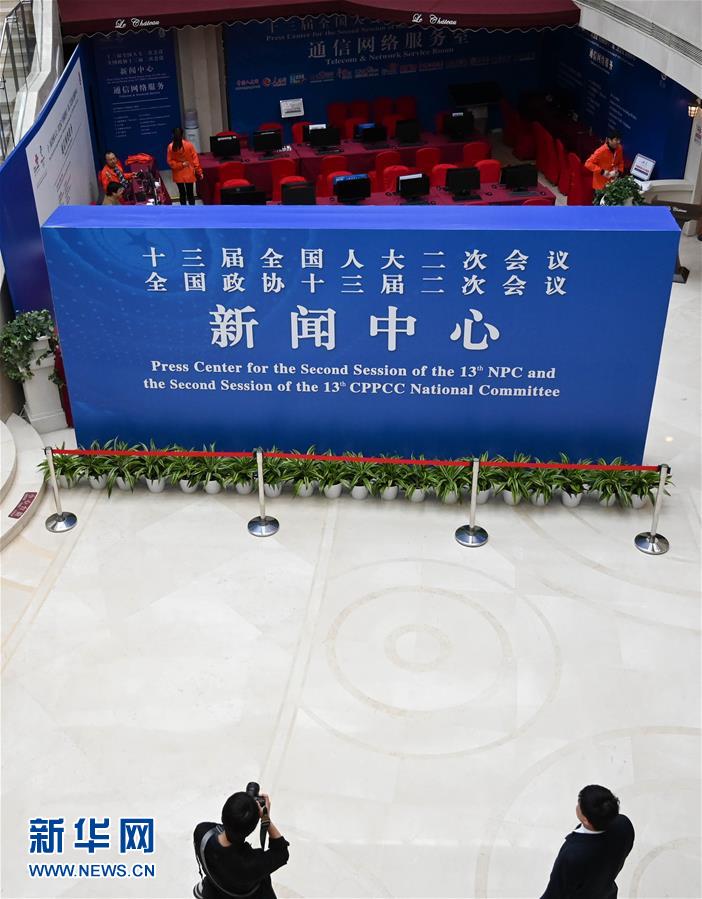 2月27日,一名记者在全国两会新闻中心拍摄照片。当日,在2019年全国两会即将召开之际,设在北京西长安街北侧梅地亚中心的两会新闻中心正式启用。十三届全国人大二次会议和全国政协十三届二次会议将分别于3月5日和3月3日在北京开幕。新华社记者陈晔华摄