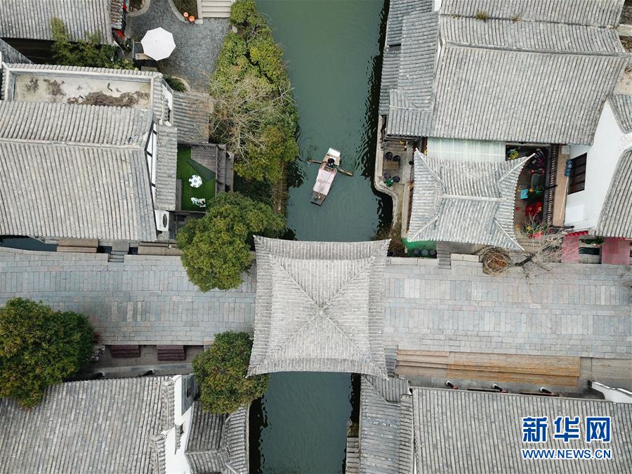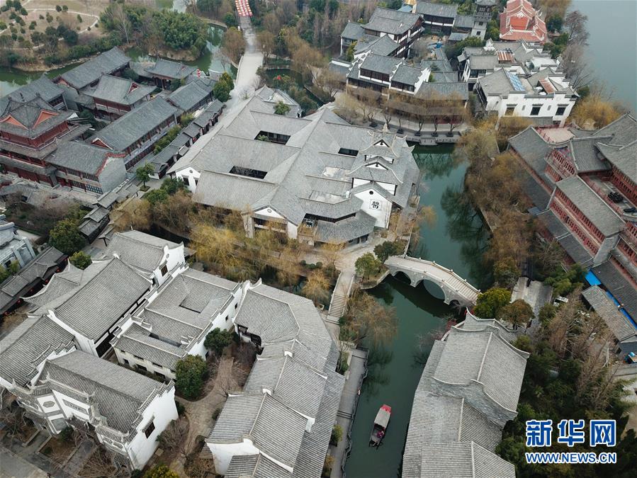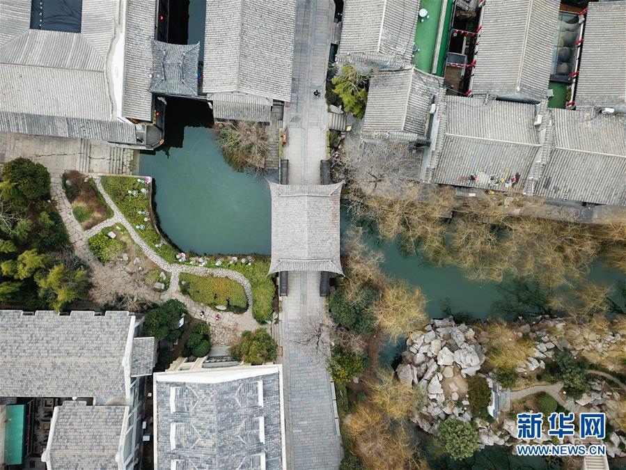 这是2月27日无人机拍摄的台儿庄古城。早春时节,天气转暖,山东省枣庄市古城台儿庄春意萌动,呈现出一派别样的北方水乡风光。新华社记者王南摄