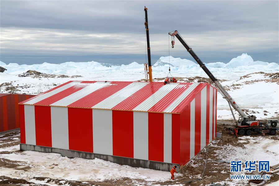 科考队员在修建中山站新车库(2月8日摄)。新华社发(中国第35次南极科考队供图)