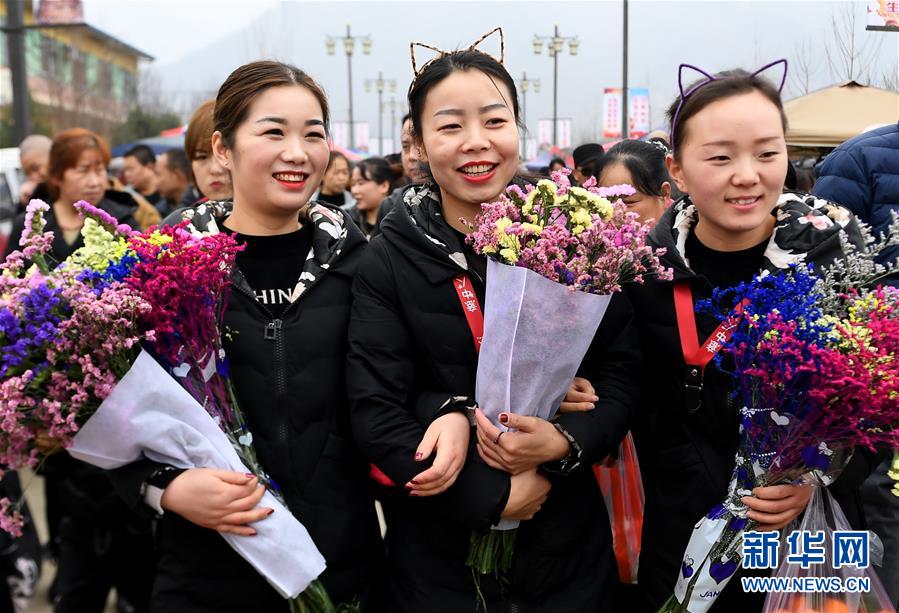 2月28日,在陕西蓝田水陆庵古庙会上,几名游客结伴逛会购物。当日是农历正月二十四,陕西西安蓝田县水陆庵古庙会上人头攒动,古老淳朴的庙会吸引众多当地群众及游客前来参加。新华社记者刘潇摄