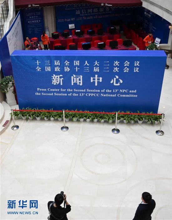 2月27日,一名记者在全国两会新闻中心拍摄照片。当日,在2019年全国两会即将召开之际,设在北京西长安街北侧梅地亚中心的两会新闻中心正式启用。十三届全国人大二次会议和全国政协十三届二次会议将分别于3月5日和3月3日在北京开幕。新华社记者陈晔华摄