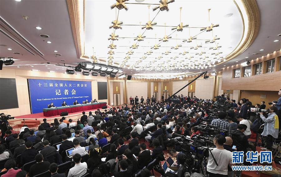 3月6日,十三届全国人大二次会议新闻中心举行记者会,邀请国家发展和改革委员会主任何立峰,副主任宁吉喆、连维良就“大力推动经济高质量发展”相关问题回答中外记者的提问。新华社记者王鹏摄