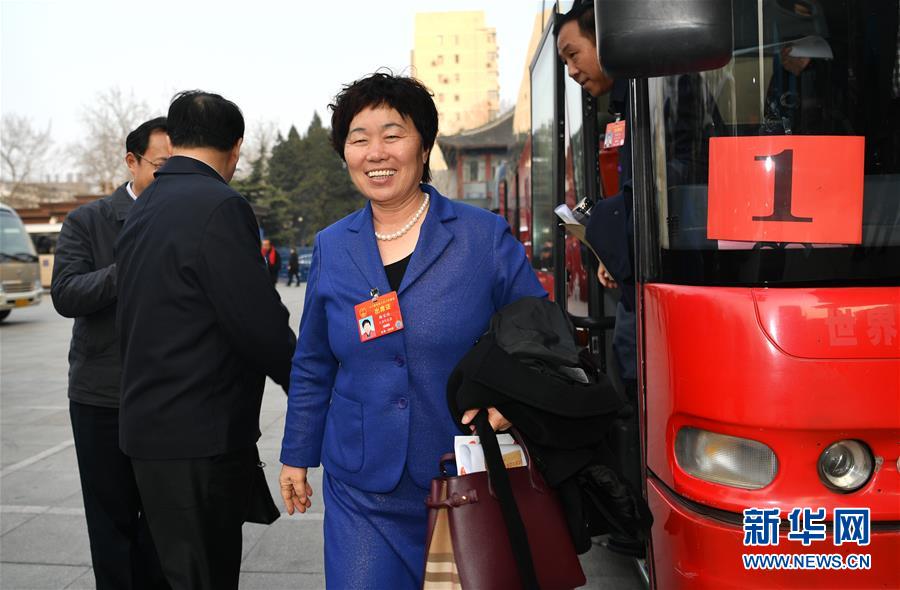 3月2日,杨宝玲乘坐大巴抵达北京参会。新华社记者李然摄
