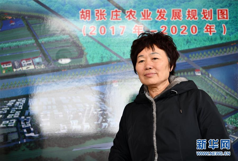 2月21日,杨宝玲在天津市东丽区胡张庄村自己的办公室内。她身后悬挂着胡张庄村农业发展规划图。新华社记者李然摄