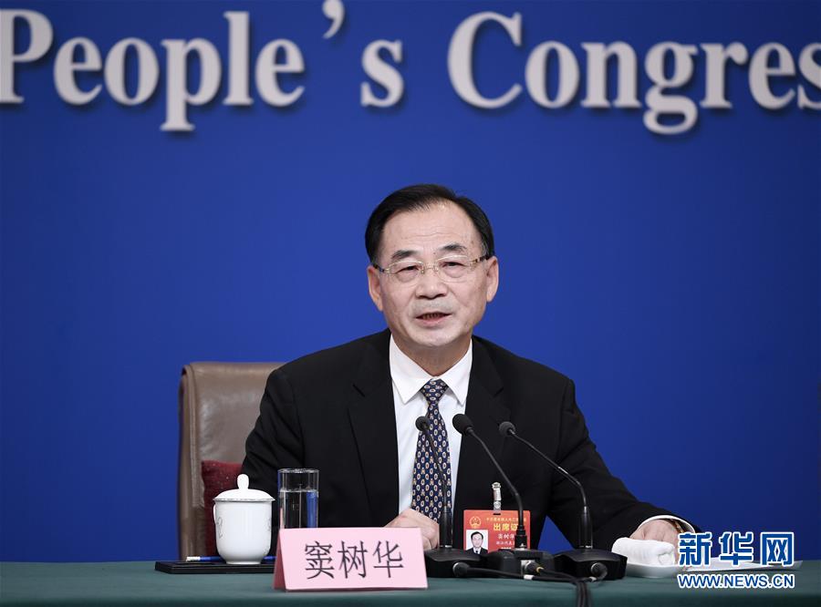 3月10日,十三届全国人大二次会议新闻中心举行记者会,邀请全国人大监察和司法委员会副主任委员徐显明、全国人大财政经济委员会副主任委员尹中卿、全国人大教育科学文化卫生委员会副主任委员吴恒、全国人大环境与资源保护委员会副主任委员窦树华和全国人大常委会预算工作委员会副主任朱明春就“人大监督工作”相关问题回答中外记者提问。这是窦树华在回答记者提问。新华社记者王鹏摄