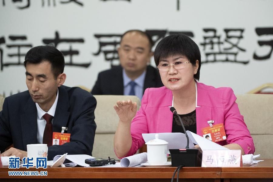 3月7日,马恒燕在宁夏代表团小组会议的会场。全国人大代表马恒燕是宁夏银川二十一小学校长。近年来,她一直努力探索通过“互联网+教育”让城乡学生共享优质教学资源。目前,她所在的学校已与另外两所学校建立了互动课堂。马恒燕建议,继续加强针对“互联网+教育”的投入,一方面普及先进设备和技术手段,同时加强山区教师相关技能培训,提升他们的专业水平。新华社记者王鹏摄