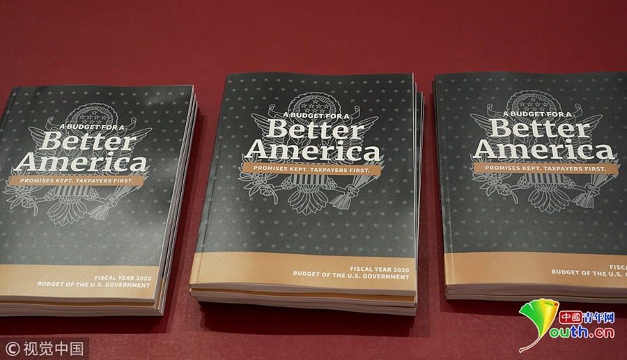 当地时间2019年3月11日,美国华盛顿,特朗普2020年财政预算案被提交给美国会众议院预算委员会。美国总统特朗普11日向国会提交2020年度财政预算案。来源:视觉中国