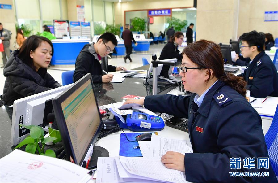 2019年2月25日,在福州经济技术开发区税务局办税服务大厅,税务工作人员为企业办理涉税业务。新华社记者魏培全摄