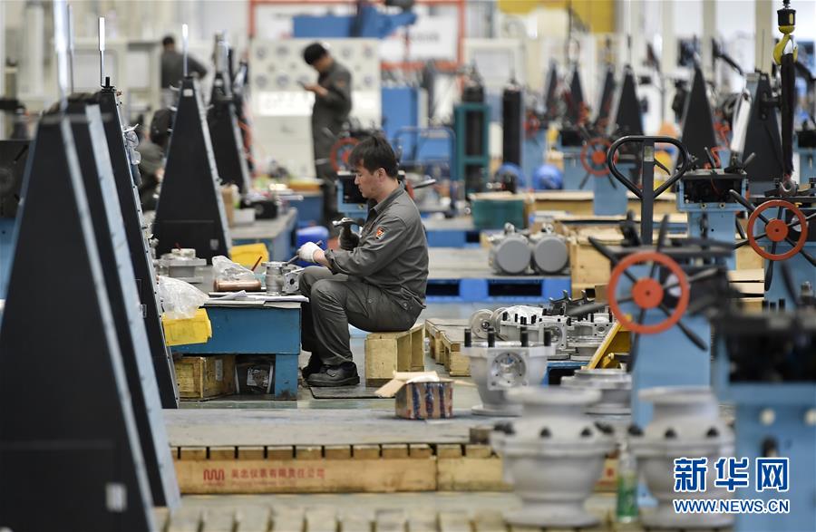 2018年5月16日,在宁夏吴忠仪表有限责任公司自动化产业园,工作人员在装配控制阀。这家老企业力争通过科技创新,实现加工制造自动化、生产设备网络化、过程管理数字化、计划调度智能化。新华社记者王鹏摄