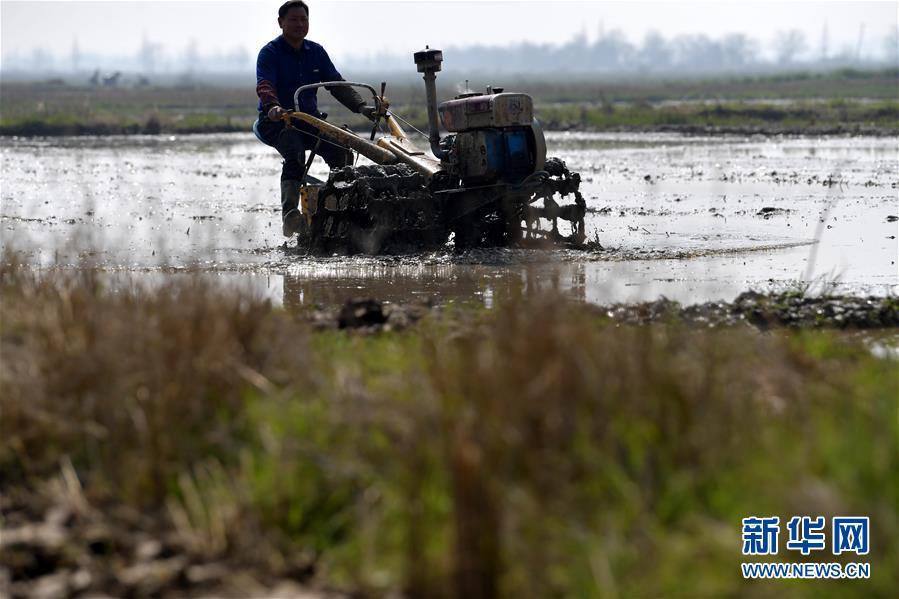 3月12日,在江西省南昌县泾口乡,当地农户在翻田平地。新华社记者彭昭之摄