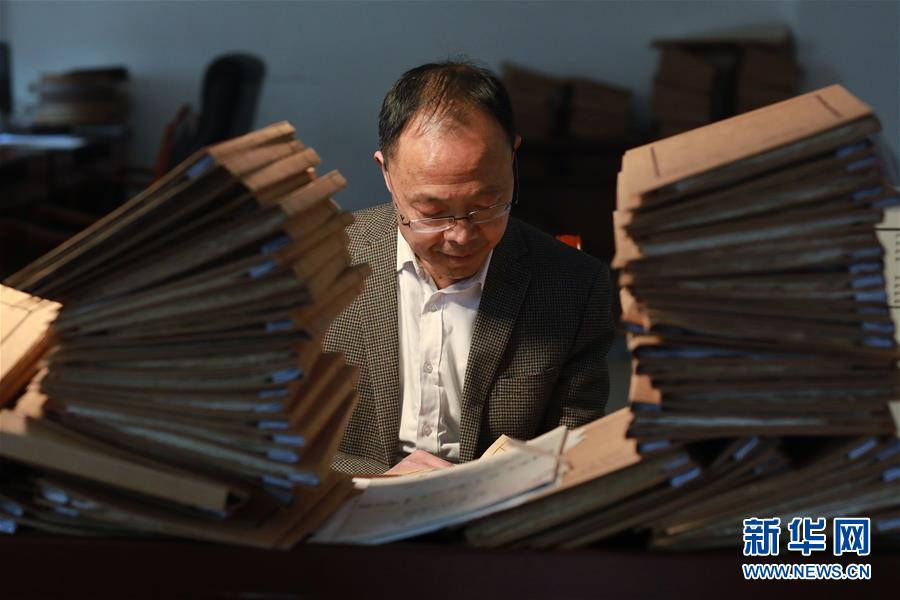 3月18日,王宗勋在锦屏文书特藏馆内整理档案。新华社记者欧东衢摄