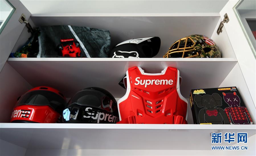 这是3月18日在美国洛杉矶一家潮牌店拍摄的商品。在美国洛杉矶,从涂鸦到说唱,从潮鞋到街舞,四处可见街头文化的影子。在街头文化浓郁的费尔法克斯大街,25岁的中国小伙夏嘉欢创立了自己的潮牌店,售卖球鞋、球衣等流行服饰,吸引了众多当地热爱街头文化的年轻人光顾。新华社记者李颖摄