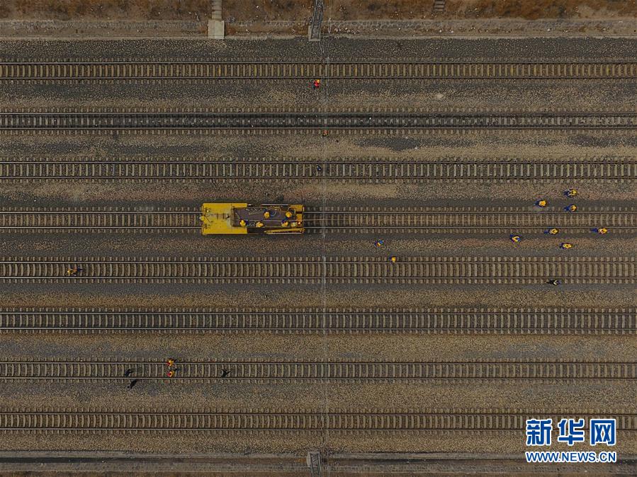 3月19日,工人们在唐呼线张集段古营盘站场进行换线作业。近日,为调整运输结构,增加铁路运输量,连接曹妃甸港和呼和浩特的唐呼线张集段正在进行万吨供电扩能改造工程。改造完工后,唐呼线将实现全年运量上亿吨的目标。唐呼线是我国西煤东运的重要通道之一,此次升级改造将缓解京津冀等沿线区域内重载卡车对道路交通和空气污染的影响。新华社记者刘磊摄
