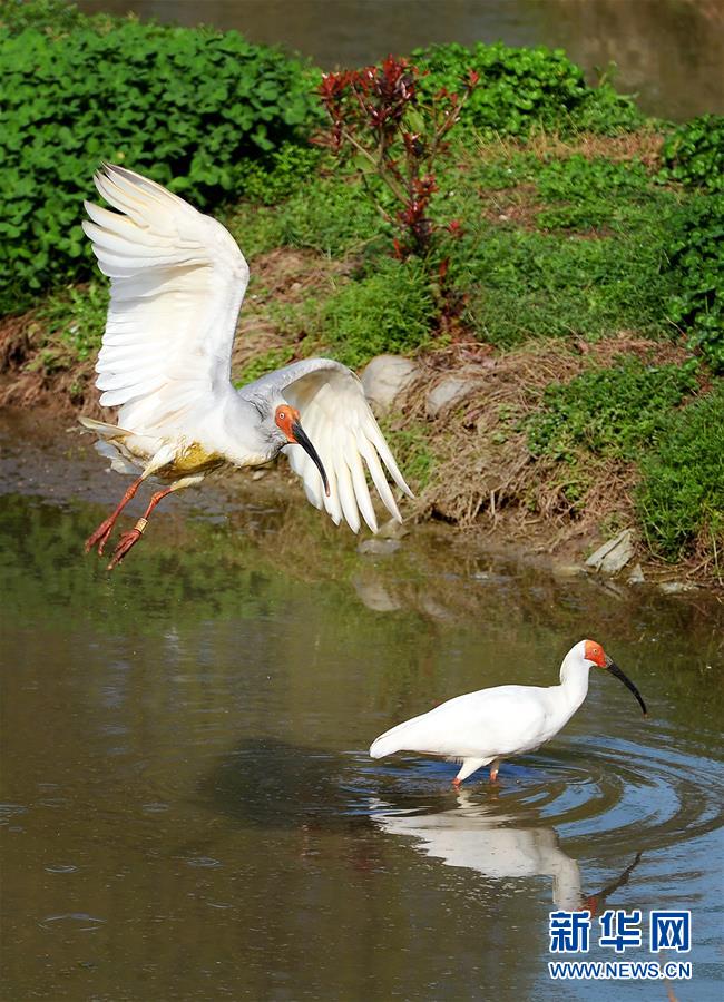 这是在陕西洋县朱鹮生态园内拍摄的朱鹮(3月20日摄)。有鸟中“东方宝石”之称的朱鹮,曾广泛分布于中国、日本、俄罗斯、朝鲜等地,二十世纪中叶以来,由于猎杀、生态破坏等原因,朱鹮濒临灭绝。1981年5月23日,世界上仅存的7只野生朱鹮在陕西省汉中市洋县境内被发现,在随后30多年日渐完善的保护体系中,科研人员先后攻克朱鹮人工饲养、繁育,笼养朱鹮自然繁育,朱鹮野化驯养放归等关键性技术难题,使得中国的朱鹮种群数量由7只发展到2600余只,世界朱鹮种群数量达近3000只。新华社记者刘潇摄
