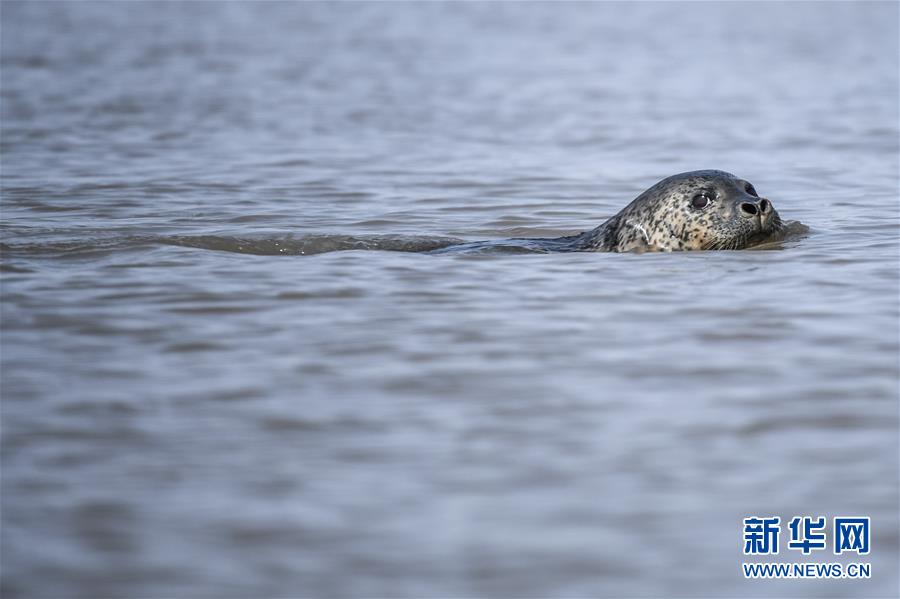 3月28日,一头斑海豹在辽宁盘锦辽河入海口三道沟海域活动。 新华社记者 潘昱龙 摄