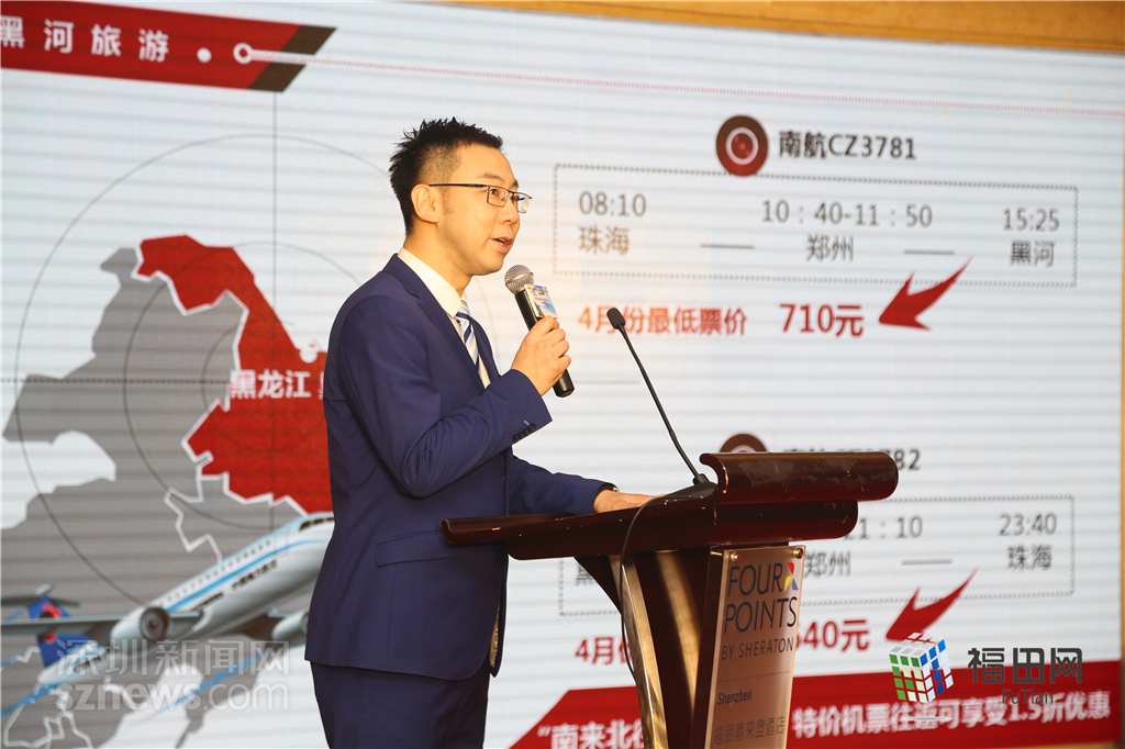 黑河市人民政府以新航线开通为契机,于2019年3月29日,在深圳市召开“中俄风情之都北国养生福地”2019黑河文化旅游产品推介会,为新航线开通宣传造势,并推介黑河市文化旅游产品,提高黑河文化旅游在重要客源城市的核心竞争力和影响力。黑河市文化广电和旅游局局长蔡伟,深圳文化广电旅游体育局推广促进处调研员张译友,深圳飞e站总经理、深圳飞产业促进会秘书长刘代禄出席会议,黑河市文化广电和旅游局、五大连池风景区相关负责人,俄罗斯阿穆尔州的外国友人、两地重点旅游企业和新闻媒体共200余人参加了推介会。