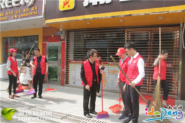 办事处相关领导一行来到辖区商业街集中打扫卫生