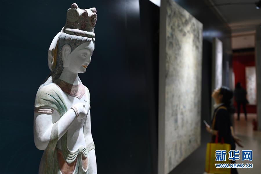 4月10日,参观者在展览上观摩。当日,“敦煌穿越千年的永恒——敦煌壁画艺术精品高校公益巡展”在云南大学开幕。此次展览选取敦煌石窟近50幅精美的壁画,分别以尊像、建筑、图案、飞天、民俗生活等极具代表性的专题,充分展现了敦煌壁画的艺术魅力。该系列展已陆续在全国30多个高校举办,取得了良好的效果。新华社记者秦晴摄