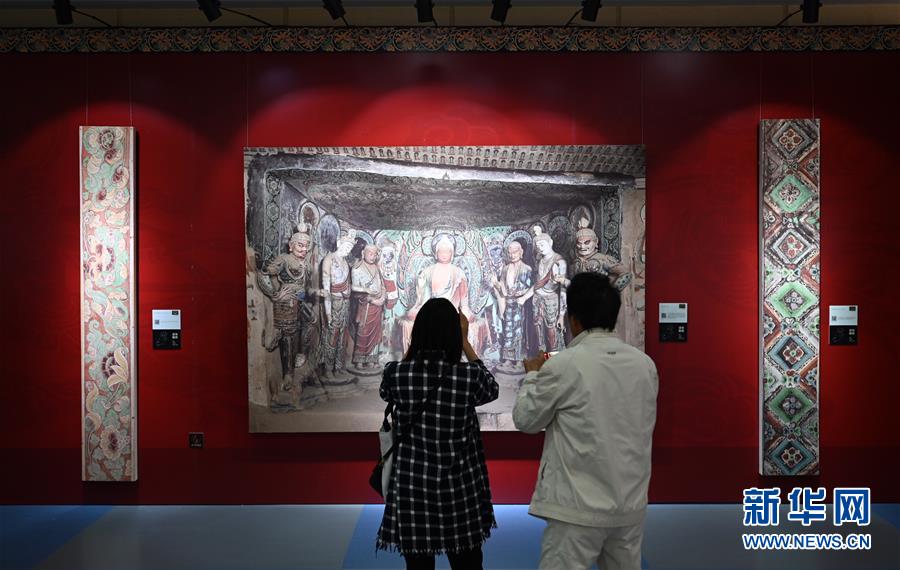 4月10日,参观者在展览上观摩。当日,“敦煌穿越千年的永恒——敦煌壁画艺术精品高校公益巡展”在云南大学开幕。此次展览选取敦煌石窟近50幅精美的壁画,分别以尊像、建筑、图案、飞天、民俗生活等极具代表性的专题,充分展现了敦煌壁画的艺术魅力。该系列展已陆续在全国30多个高校举办,取得了良好的效果。新华社记者秦晴摄