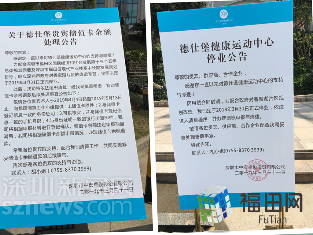 因租赁合同到期,为配合政府对香蜜湖片区规划改造,德仕堡健康运动中心定于2019年3月31日正式停业,依法进入清算程序,并办理债权申报与清偿。