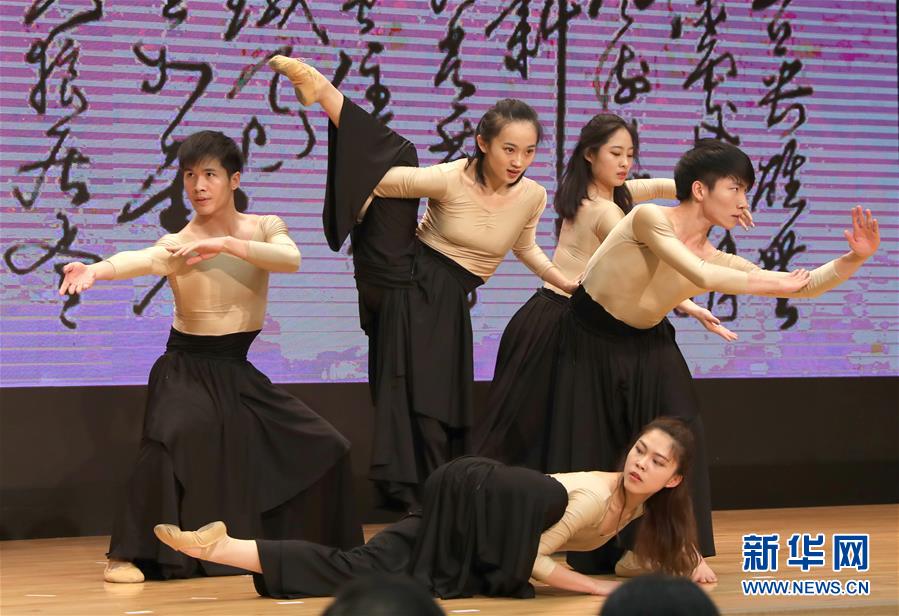 4月12日,内地学生在表演。当日,由教育部与香港语文推广委员会合办的“2019中华经典诵读香港展演会”在香港举行,近千名香港师生、教育界人士参加了活动。新华社记者吴晓初摄
