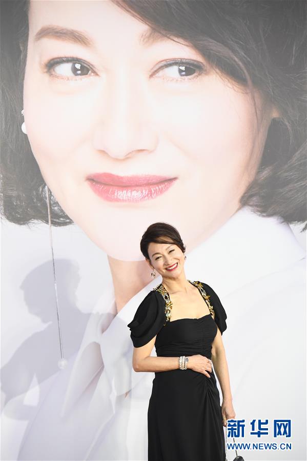 4月14日,艺人惠英红走在红地毯上。当日,第38届香港电影金像奖颁奖典礼在香港文化中心举行。新华社记者吕小炜摄