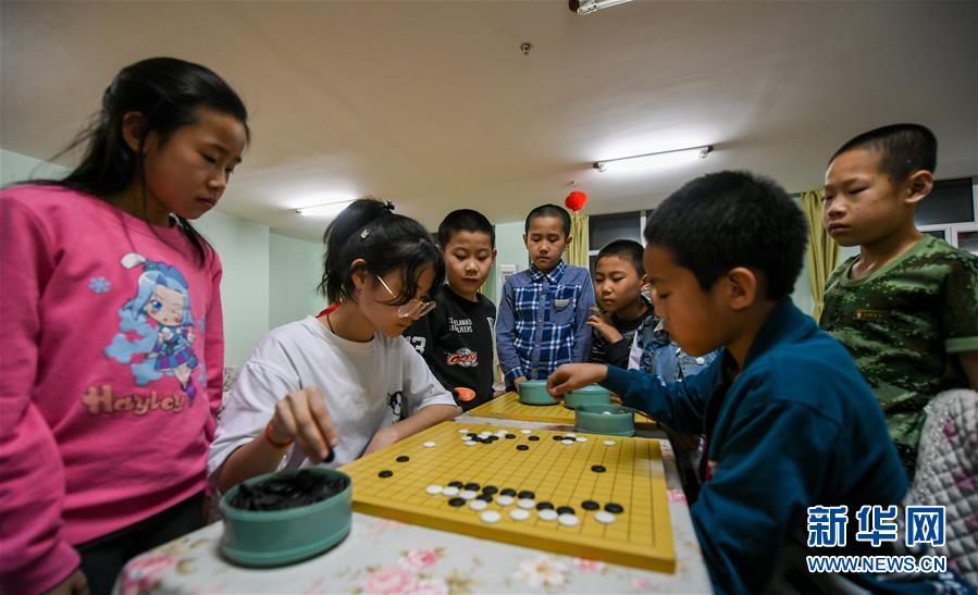 4月14日,呼伦贝尔市儿童福利院的孩子们在围棋课堂上切磋棋艺。内蒙古呼伦贝尔市儿童福利院现养育孤残儿童170人,每到傍晚,福利院内都能看到孩子们学习的身影,这里为不同年龄段的孩子提供了形式多样的学习课堂,涵盖数学、化学、英语、语文、小提琴、围棋、非洲鼓等内容。新华社记者彭源摄