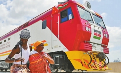 2017年1月11日,肯尼亚蒙巴萨当地民众在中国承制的蒙内铁路首批内燃机车旁载歌载舞。蒙内铁路项目累计为当地直接创造逾4.6万个工作岗位。新华社记者孙瑞博摄